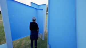 Door openingen in de wanden worden doorkijkjes gecreëerd naar het heden, waardoor het ontwerp van deze buiten tentoonstelling een brug slaat tussen verleden en nu. Binnen en buiten lopen naadloos in elkaar over. De veranderlijke route en schuine wanden versterken het thema van kwetsbare vrijheid – een gevoel dat nog altijd actueel is.