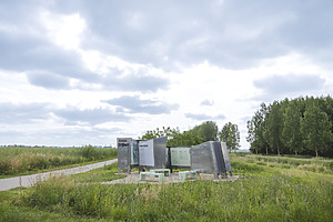 Deze buiten tentoonstelling is een ruimtelijk ontwerp dat het spanningsveld tussen verleden en heden tastbaar maakt. Het gebruik van aluminium verwijst naar de vliegtuigen die tijdens de luchtoorlog het Rivierengebied markeerden. De installatie slingert als een rivier door het landschap – een krachtige metafoor voor tijd en perspectief. Intieme ruimtes binnen het ontwerp nodigen bezoekers uit om stil te staan bij de dilemma’s uit de Tweede Wereldoorlog, zonder volledig overzicht, net als destijds.